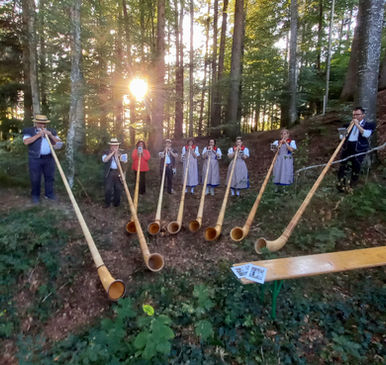 Fernsehaufnahmen zu "Potzmusig" vom 23.7.22 bei Alphornbau Bernatone in Habkern BE